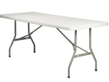 The 6-foott white rectangular table is perfect for any event or party. With durable plastic top and sturdy Metal legs, provides ample seating space for guests.